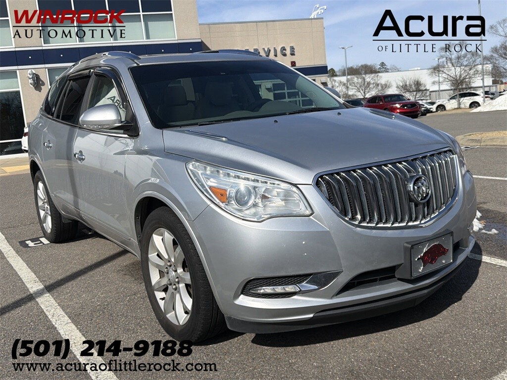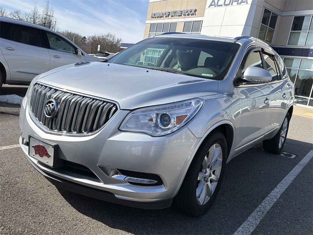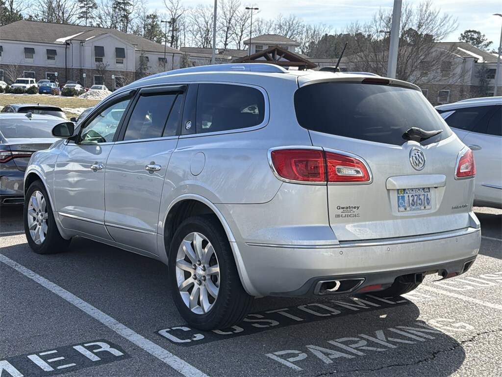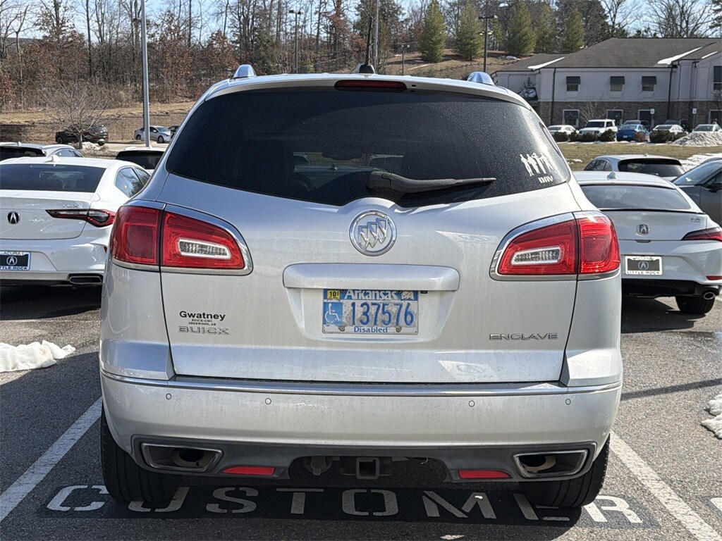 Navigation System, Leather Seats, Sunroof / Moonroof, Heated and Cooled Seats, Backup Camera, Blind Spot Monitoring System, Parking Sensors, Rear Cross-Traffic Alert, Forward Collision Warning, Premium Wheels, Premium Audio, Lane Departure Warning, Power Liftgate, Enclave Premium Group, 4D Sport Utility, 3.6L V6 SIDI VVT, 6-Speed Automatic Electronic with Overdrive, FWD, Quicksilver Metallic, Light Titanium Leather, 3rd row seats: split-bench, 4-Wheel Disc Brakes, 4500lbs Trailering Package, 7-Passenger Seating, 8-Way Power Driver Seat Adjuster, 8-Way Power Passenger Seat Adjuster, ABS brakes, Air Conditioning, Articulating Headlights, Auto-dimming door mirrors, Auto-dimming Rear-View mirror, Automatic temperature control, Bose Advanced 10-Speaker Audio System, Dual front impact airbags, Dual front side impact airbags, Emergency communication system: OnStar Guidance, Experience Buick Package, Forward Collision Alert & Lane Departure Warning, Front anti-roll bar, Front Bucket Seats, Front dual zone A/C, Fully automatic headlights, Garage door transmitter, Heated door mirrors, Heated front seats, Heated Steering Wheel, Heated steering wheel, Heavy-Duty Cooling System, High intensity discharge headlights: Bi-Xenon, Illuminated entry, Leather steering wheel, Low tire pressure warning, Memory seat, Memory Settings, Occupant sensing airbag, Outside temperature display, Overhead airbag, Power door mirrors, Power Tilt & Telescopic Steering Column, Power Tilt-Sliding Moonroof, Power-Folding Heated Body-Color Outside Mirrors, Preferred Equipment Group 1SN, Premium Package, Radio: Color Touch AM/FM/CD/Nav w/IntelliLink, Rear air conditioning, Rear anti-roll bar, Remote keyless entry, Side Blind Zone Alert w/Cross Traffic Alert, Steering wheel memory, Steering wheel mounted audio controls, Telescoping steering wheel, Tilt steering wheel, Trailer Hitch, Universal Tablet Holders (LPO), Ventilated front seats, Wheels: 20" Bright-Machined Aluminum.