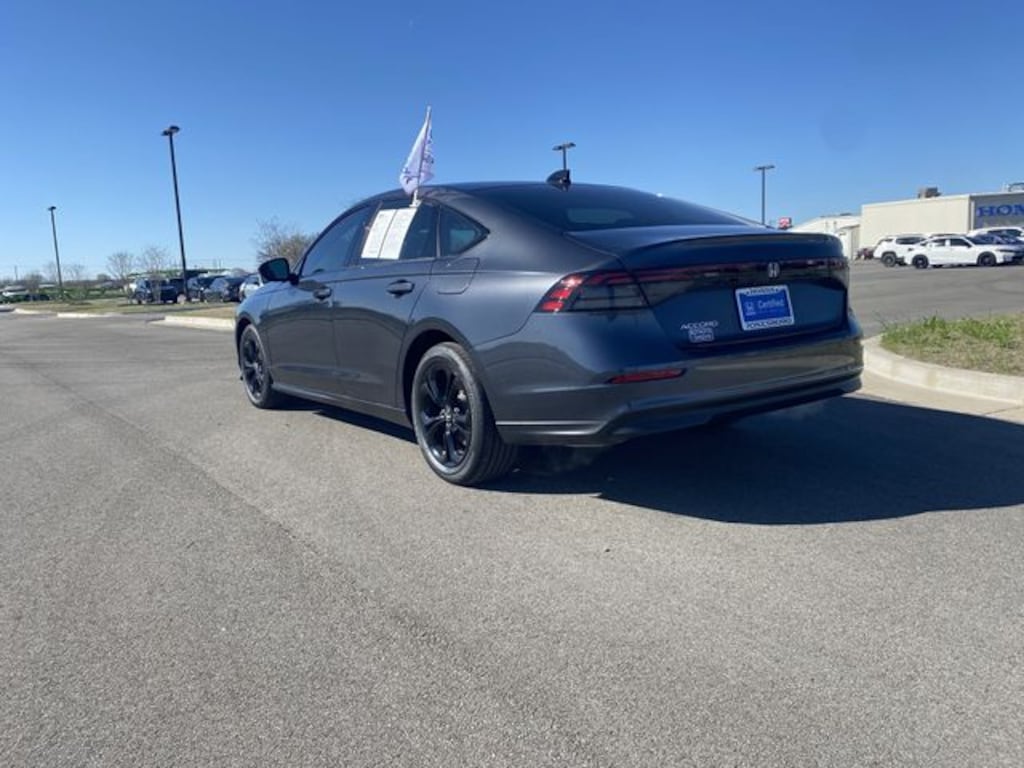 This 2025 Honda Accord comes equipped with 4-Wheel Disc Brakes, 8 Speakers, ABS brakes, Adaptive Cruise Control: Adaptive Cruise Control (ACC) with Low-Speed Follow, Air Conditioning, Alloy wheels, AM/FM radio, Apple CarPlay/Android Auto, Auto High-beam Headlights, Automatic temperature control, Blind Spot Information (BSI) System warning, Brake assist, Bumpers: body-color, Compass, Delay-off headlights, Driver door bin, Driver vanity mirror, Dual front impact airbags, Dual front side impact airbags, Electronic Stability Control, Emergency communication system: HondaLink Assist, Exterior Parking Camera Rear, Fabric Seat Trim, Four wheel independent suspension, Front anti-roll bar, Front Bucket Seats, Front Center Armrest, Front dual zone A/C, Front reading lights, Fully automatic headlights, Heated door mirrors, Heated Front Bucket Seats, Heated front seats, Illuminated entry, Knee airbag, Lane departure: Lane Keeping Assist System (LKAS) active, Low tire pressure warning, Occupant sensing airbag, Outside temperature display, Overhead airbag, Overhead console, Panic alarm, Passenger door bin, Passenger vanity mirror, Power door mirrors, Power driver seat, Power moonroof, Power steering, Power windows, Radio data system, Radio: 180-Watt Audio System, Rear anti-roll bar, Rear reading lights, Rear seat center armrest, Rear side impact airbag, Rear window defroster, Remote keyless entry, Security system, Speed control, Speed-sensing steering, Speed-Sensitive Wipers, Split folding rear seat, Steering wheel mounted audio controls, Tachometer, Telescoping steering wheel, Tilt steering wheel, Traction control, Trip computer, Variably intermittent wipers, and Wheels: 17" x 7.5J Berlina Black.